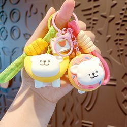 Nuevo lindo Anime Kawaii Animal llavero tostada pan línea perro muñeca llavero bolsa colgante accesorios niños cumpleaños goma plástico