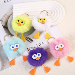 LLavero de bola de pompón de algodón a la moda para mujer, pompones de piel esponjosa, llavero con colgante de felpa de bola de carbón bonito y feo de dibujos animados para bolso