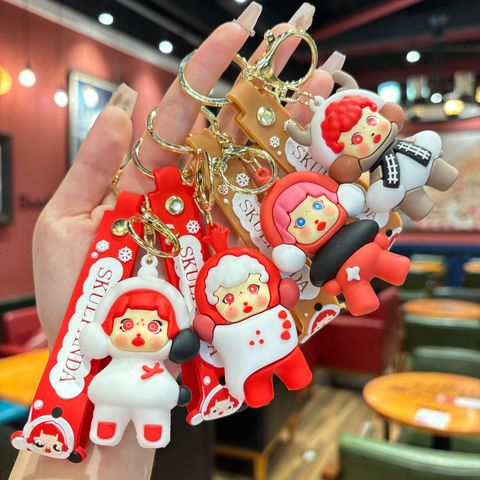 Sınır ötesi yeni noel karikatür PVC plastik dijital baskı anahtarlık çanta süsler zarif noel baba araba anahtarı küçük